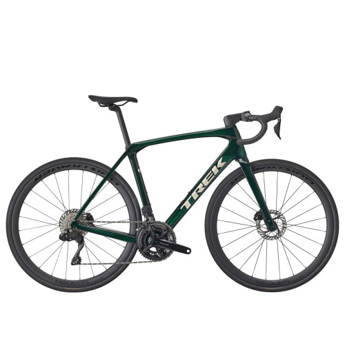 Domane SL z włókna węglowego, zwężana karbonowa rura sterowa, wewnętrzne prowadzenie przewodów hamulca, mocowania błotników, hamulce tarczowe flat mount, oś przelotowa 12 x 100 mm