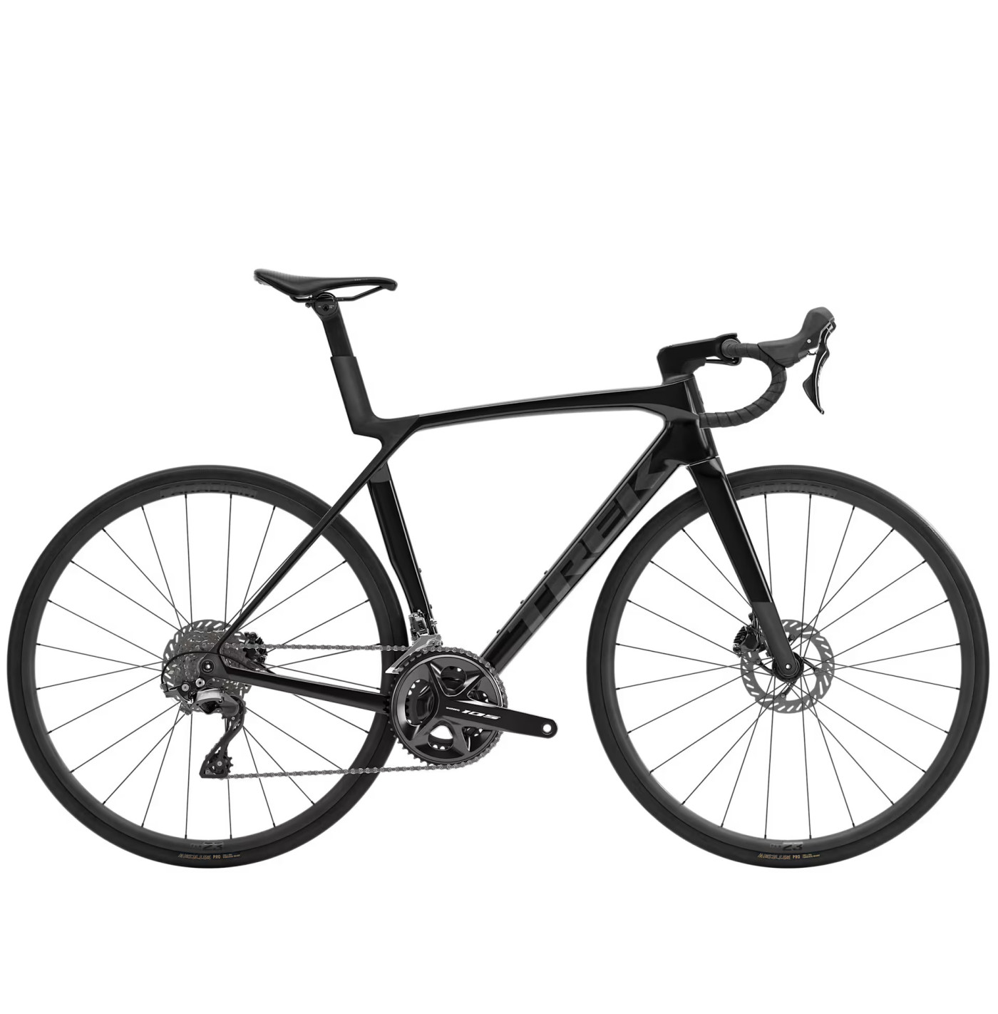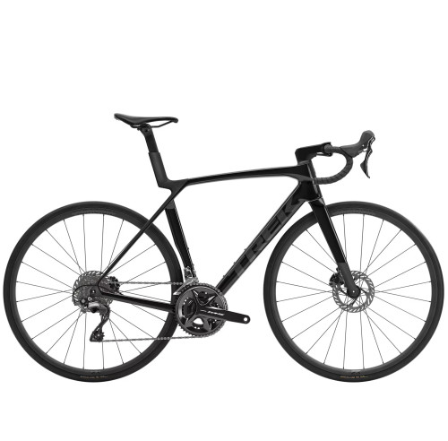 Madone 8 w całości z włókna węglowego, zwężana rura sterowa z włókna węglowego, wewnętrzne prowadzenie przewodów hamulca, hamulce tarczowe flat mount, sztywna oś przelotowa 12 x 100 mm ze skosem