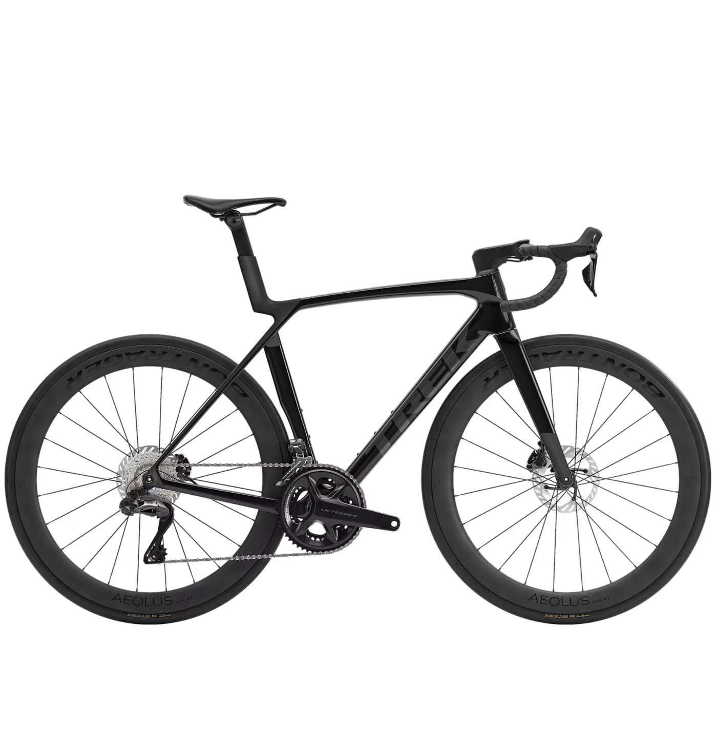 Madone 8 w całości z włókna węglowego, zwężana rura sterowa z włókna węglowego, wewnętrzne prowadzenie przewodów hamulca, hamulce tarczowe flat mount, sztywna oś przelotowa 12 x 100 mm ze skosem